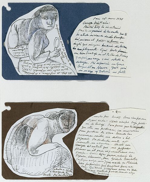 - Medium: Cut and pasted paper, black marker, pen and black, blue, and brown inks, and colored pencil on wove paper