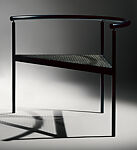 The formal simplicity, industrial materials, and matte black finish of this chair typify early High Tech design and lend it a rationalist, state-of-the-art quality. The frame, which comprises three legs supporting a semicircular joint back and armrest, is made from blackened steel tubing. The triangular seat of woven stainless steel wires fits within the arc of the back and armrest. Though the severity of this chair indicates that it was not intended for long-term sitting, a particular lyricism is evoked through the grace and refinement of its proportions, the visual and physical strength of its materials, and the poetic quality of its name.