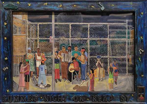 - Medium: Opaque watercolor on paper, in artist-made painted papier-mâché frame
