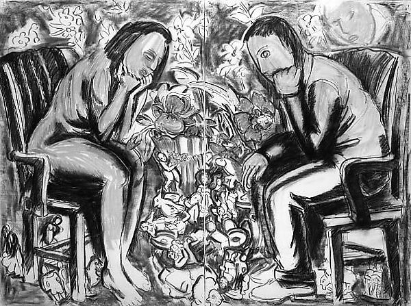 - Medium: Charcoal and oil pastel on two sheets of paper