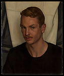 This arresting portrait by Italian American painter Luigi Lucioni shows Jared French, himself also an artist, who served as the model for the acrobat in Paul Cadmus’s Gilding the Acrobats. In 1930, when Lucioni painted this portrait, Cadmus and French were students together at New York’s Art Students League and had begun a relationship that would last for several years. Here, Lucioni highlights French’s handsome face by placing it against an off-white cloth in the background and evoking the different textures of skin and hair with finely rendered details. Coincidentally, Lucioni and French both died in 1988.