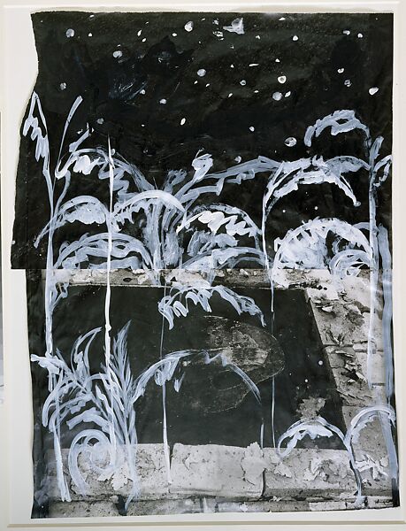 Midsummer Night (or Johannisnacht), the night before the summer solstice, is celebrated in Germany with both pagan and Christian traditions. In one such tradition, the spores of ferns are collected for use in rituals concerning invulnerability and invisibility. Here, Kiefer painted ferns over two cut and pasted photographs of a palette in the artist’s studio. He explained: "The first trees were ferns. They are primal. Charcoal and oil are made out of ferns that existed at the beginning of life. There are many stories and folktales about plants having memories . . . [and] ferns may contain secret knowledge."