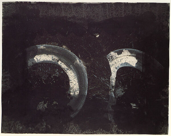 Black Monsoon is one of the final two prints that Hodgkin produced with Judith Solodkin, the master lithographer of Solo Press in New York City, where Hodgkin had editioned many works over the previous ten years. A new looseness and freedom in Hodgkin's technique is visible in the deep black splatters and puddles of pigment in this print, whose murky depths presage the larger spills and sweeps of the Venetian Views (MMA 1995.425.1a-p and .2a-p; 1995.467.4a-p and .5a, b).