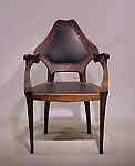 Pankok’s armchair is part of a lady’s sitting-room suite that the designer presented at the 1901 Dresden International Exhibition. A cofounder of the Vereinigten Werkstätten für Kunst im Handwerk (United Workshops for Arts and Crafts), Pankok designed this chair in the manner of Jugendstil (Style of Youth), a restrained, curvilinear German interpretation of French Art Nouveau popular during the 1890s and early twentieth century. The sensuous, swelling forms and contours make the armchair appear like a living organism. The combination of warm oak and dark leather enhances its appeal.