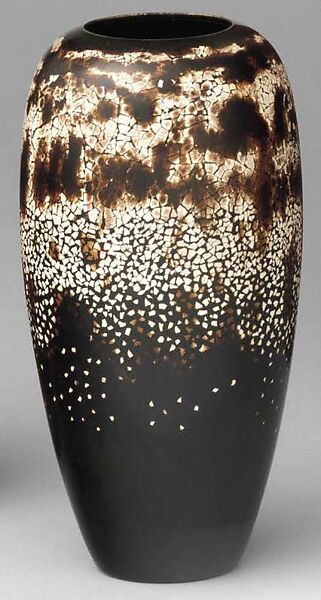A fascination with Asian lacquered metalwork sparked Dunand's interest in working with natural lacquer, a material that differs substantially from the imitation lacquer varnishes that had been produced in Europe since the seventeenth century. Dunand initially used transparent lacquer to protect the delicate patinas of his dinanderie wares but soon experimented with the decorative possibilities of more advanced lacquer techniques. A particular specialty was the production of eggshell lacquer, an ancient Japanese technique traditionally used for small-scale objects. The painstaking process involved placing tiny particles of crushed eggshell, piece by piece, into a layer of fresh lacquer. This aspect of his business became so successful that Dunand maintained his own flock of chickens to provide eggshells of suitable quality and color.