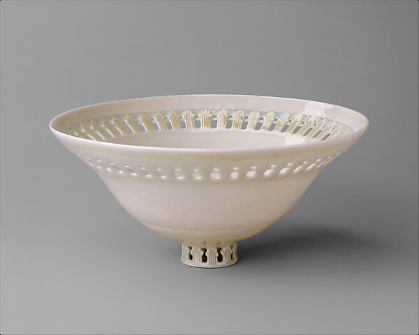 Adelaide Alsop Robineau was one of the most influential figures in ceramics just after the turn of the century. With her husband, Samuel, she published the influential journal, "Keramic Studio," she participated in the innovative collaborative porcelain-making and educational enterprise at University City, Missouri, and she produced some of the most exquisite work in porcelain ever to be fashioned in this country. She was one of a group of pioneering women who tackled the difficult medium of porcelain. Robineau's works are characterized by jewel-like crystalline glazes and painstaking carved decoration. The eggshell-thin porcelains that she executed are among the most virtuosic of all her work. This coupe, in a shape inspired by Japanese porcelains, is one of only two surviving examples of Robineau eggshell porcelain. It represents the most difficult and time-consuming work ever undertaken by its creator. The designs, excised and incised on a body of paperlike thinness, reveal portions of almost transparent luminosity.
