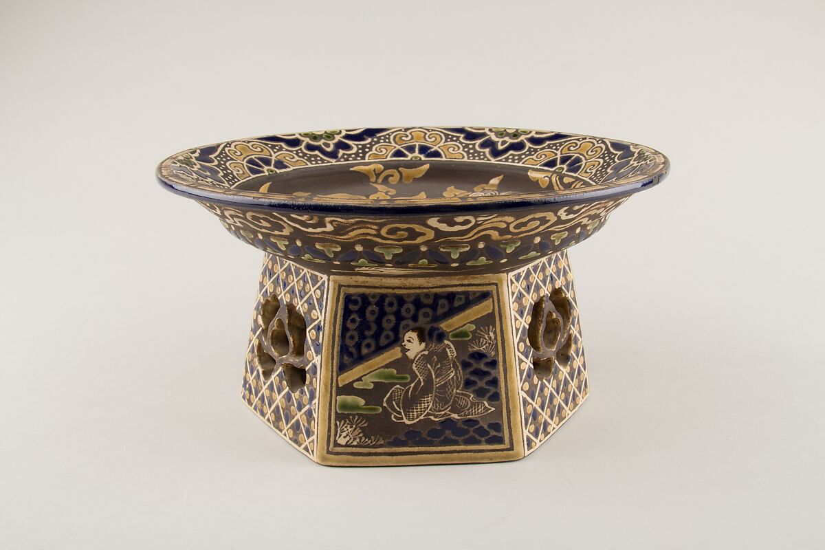 - Medium: Buff ware decorated with colored enamels which do not touch, and the clay between has been darkened (Kyoto ware)