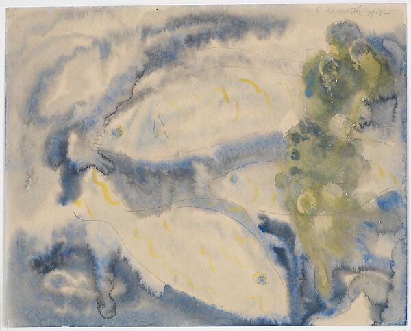 The colorful tropical fish in the waters around Bermuda are featured in a large series of whimsical watercolors, of which The Met owns five. Although they look imaginary, they accurately reproduce the markings and shapes of identifiable species. At other times, between 1915 and 1918, Demuth is reported to have frequented the New York Aquarium, then in Battery Park.