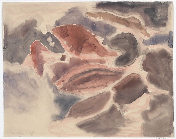 The colorful tropical fish in the waters around Bermuda are featured in a large series of whimsical watercolors, of which The Met owns five. Although they look imaginary, they accurately reproduce the markings and shapes of identifiable species. At other times, between 1915 and 1918, Demuth is reported to have frequented the New York Aquarium, then in Battery Park.