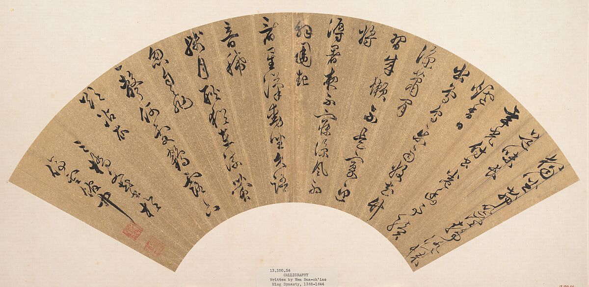 - Medium: Folding fan mounted as an album leaf; ink on gold-flecked paper