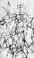 - Medium: Pen and dark red ink and graphite on tracing paper