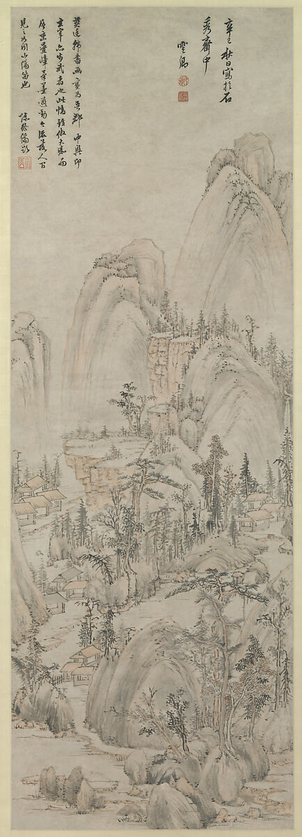 Mo Shilong's career was cut short by his early death, and it was his brilliant friend Dong Qichang (1555–1636) whose paintings and critical writings ultimately defined a new orthodox canon in scholar-amateur painting. This scroll supports Mo's significant contribution to Dong's revolutionary new style. An inscription by the contemporary connoisseur Chen Jiru makes clear how deeply Mo's vision impressed his contemporaries: