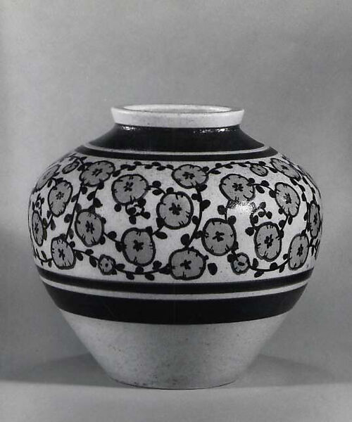 While apprenticed to the renowned French potter Ernest Chaplet, Lenoble, who had worked in a faience factory, discovered stoneware. He went on to become one of the first modern ceramists to elevate it from a base material, suitable only for disposable utilitarian wares, to one worthy of the highest artistic expression. Lenoble’s marriage of delicate floral imagery with stoneware, a dense and raw material, is a testament to his creativity and skill; the ornament is infused with a naivete that was celebrated by contemporary artists who sought inspiration in vernacular traditions. This vase was bought by the New York collector Aline Meyer Liebman at the Exposition des Arts Décoratifs in Paris in 1925 and was later given to The Met.