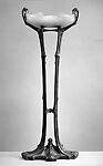 This flambeau comes from the dining room designed for the Paris apartment of the engineer Auguste Rateau. The project was overseen by Lévy-Dhurmer, a ceramist who turned to painting and decorating. Each room was conceived according to a unified theme, in this case wisteria, a symbol of welcome. Lévy-Dhurmer entrusted the execution of his designs to a number of highly skilled makers. The bronze-and-alabaster standing lamps were made by Falize Frères, a renowned Paris firm that produced high-end metalwork and jewelry. For more information on the full room, refer to MMA 66.244.1-.25.