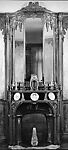 This chimneypiece comes from the dining room designed for the Paris apartment of the engineer Auguste Rateau. The project was overseen by Lévy-Dhurmer, a ceramist who turned to painting and decorating. Each room was conceived according to a unified theme, in this case wisteria, a symbol of welcome. Lévy-Dhurmer entrusted the execution of his designs to a number of highly skilled makers. The woodwork and furniture were made by Édouard-Louis Collet, who covered the door and wall panels with perfectly book-matched quartered walnut veneer inlaid with purplish amaranth wood representing clusters of wisteria blossoms. The fireplace surround was handworked by the metalsmith Jean Dunand. For more information on the full room, refer to MMA 66.244.1-.25.