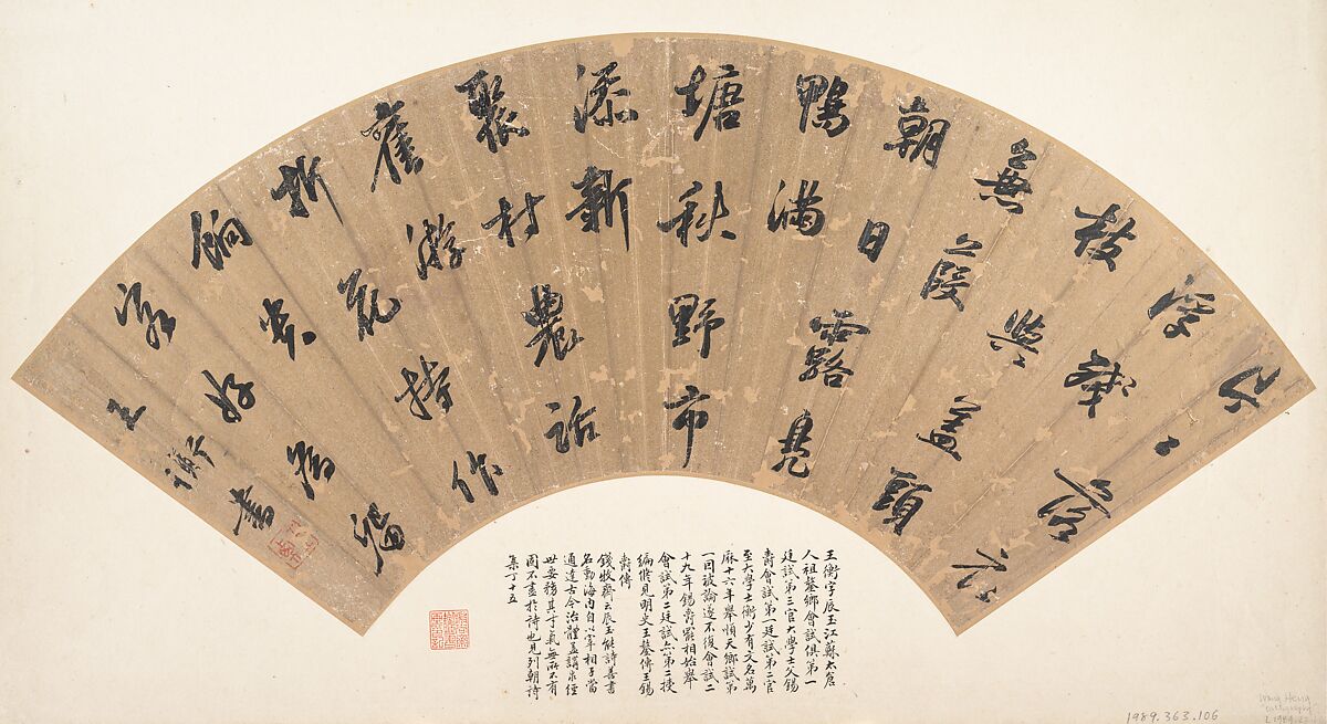 - Medium: Folding fan mounted as an album leaf; ink on gold-flecked paper