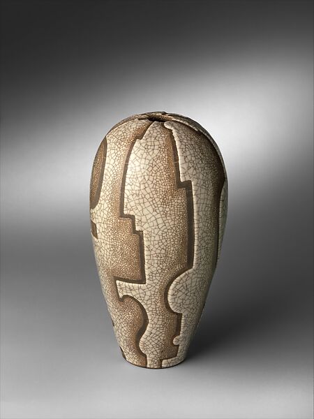 Many designers saw Cubism as a new, abstract vocabulary that could be manipulated and applied for its superficial decorative effect without any real content or innovation. That certainly applies to this vase, the peau-de-serpent (snakeskin) glaze of which is enough to immediately establish it as the work of Buthaud.