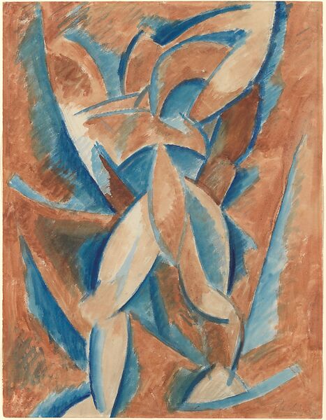 Following the completion of Les Demoiselles d'Avignon in 1907 (Museum of Modern Art, New York), Picasso began to work on a large group of paintings and watercolors of single or several figures melded into their surroundings, as if they were emerging from drapery or clay. Picasso likely made this watercolor immediately after finishing Standing Nude (MMA 67.162). Shadows that are there penciled in are here colored with blue watercolor. Both works show Picasso revising and perfecting his ideas as he worked step-by-step through certain problems he had set for himself.