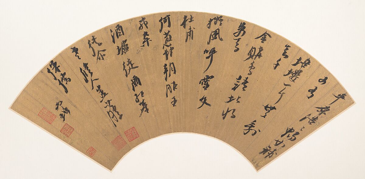 - Medium: Folding fan mounted as an album leaf; ink on gold paper
