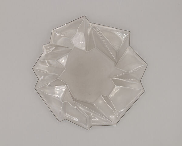 Haley's Ruba Rombic mold-blown glassware was inspired by Cubist paintings he saw at the 1925 Paris Exposition Internationale des Arts Décoratifs et Industriels Modernes. According to a 1928 advertisement, Haley derived its name from ruba'i, a Persian poetry genre, and the geometry term rhombic, meaning an irregular form having no right angles. The name implies that these glass objects merge refined art and scientific knowledge, an appropriate combination for expressionistic objects manufactured industrially. Department stores across America sold the factory-produced Ruba Rombic glassware line at an affordable price for middle-class consumers.