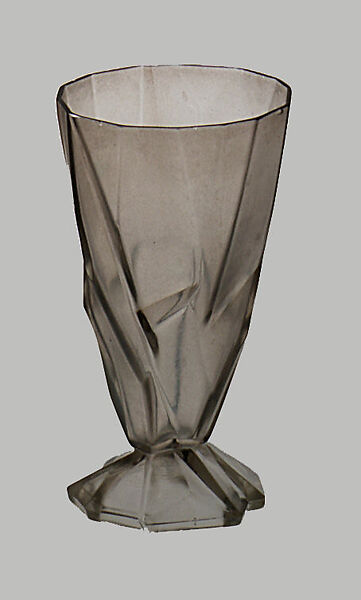 Haley's Ruba Rombic mold-blown glassware was inspired by Cubist paintings he saw at the 1925 Paris Exposition Internationale des Arts Décoratifs et Industriels Modernes. According to a 1928 advertisement, Haley derived its name from ruba'i, a Persian poetry genre, and the geometry term rhombic, meaning an irregular form having no right angles. The name implies that these glass objects merge refined art and scientific knowledge, an appropriate combination for expressionistic objects manufactured industrially. Department stores across America sold the factory-produced Ruba Rombic glassware line at an affordable price for middle-class consumers.