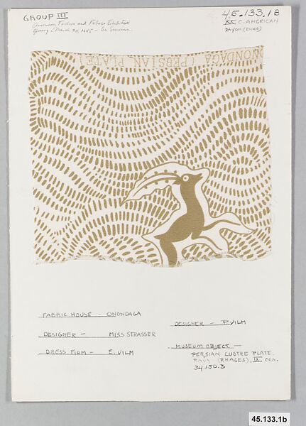 - Credit Line: Gift of Onondaga Silk Company Inc., 1945