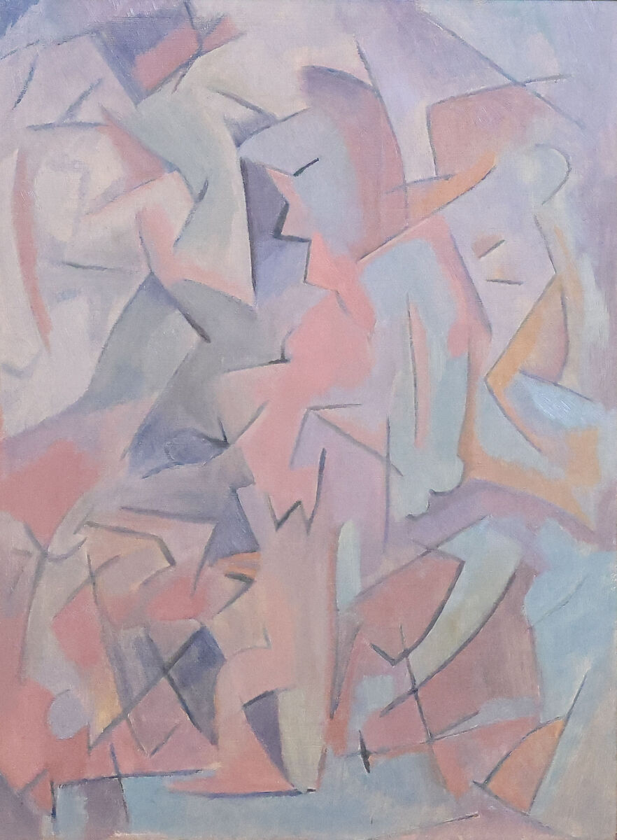 In his journal (January 1913), Dawson tried to explain the "peculiar feelings" that his abstract paintings evoked: "awe, mystery, reverie (I can't find the words). Whatever they are, these feelings are produced entirely by shapes and colors that are not those of any visible or external objects." While his shapes and colors may have been non-representational, his imagery was not entirely abstract. Here, as in many of his paintings of the period, Dawson incorporated figurative elements. In the center of the composition is the suggestion of a standing figure in profile, its angled and compact shape reminiscent of the African sculptures that inspired the French Cubist and German Expressionist painters circa 1905 to 1920 that Dawson could have seen in Europe or reproduced in periodicals.
