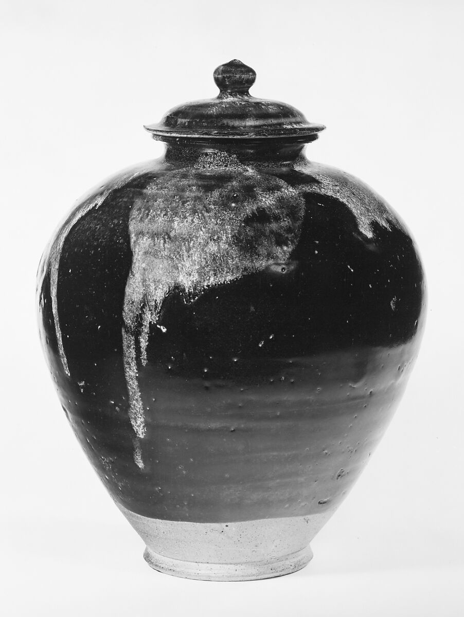 - Medium: Earthenware with dappled black glaze