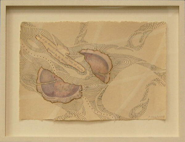 - Medium: Pen and black ink, wash and resist, pasted burned paper, and punched holes on handmade paper