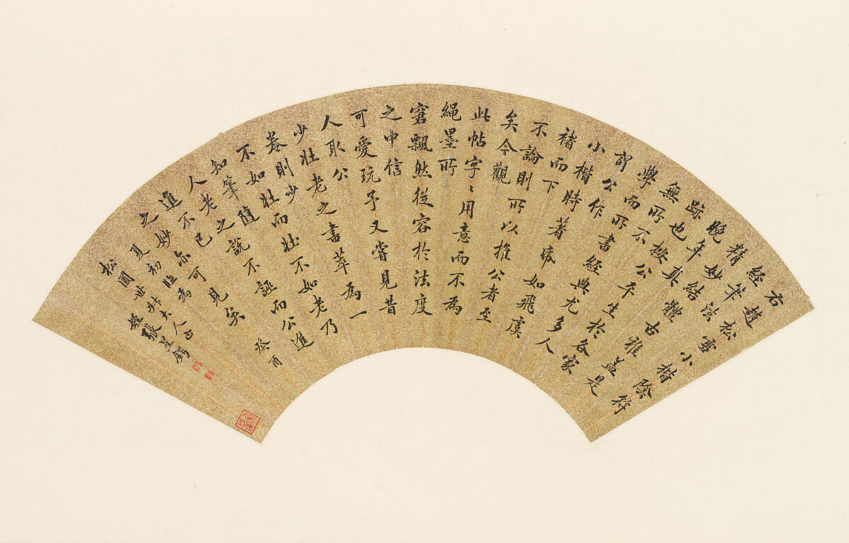 - Medium: Folding fan mounted as an album leaf; ink on gold-flecked paper