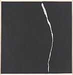 Polk Smith arrived in New York from his native Oklahoma in 1936 and, thanks to an early encounter with the work of the Dutch painter Piet Mondrian (1872–1944), began to develop his own distinctive style of geometric abstraction. Between 1956 and 1964 he produced a group of uncharacteristically gestural drawings, consisting simply of ripped and scraped sheets of coated paper. By tearing the black sheet in one continuous, irregular line, and revealing the white, uncoated layer underneath, Polk Smith created a dramatic image—like a bolt of lightning in a dark field—with one decisive stroke.