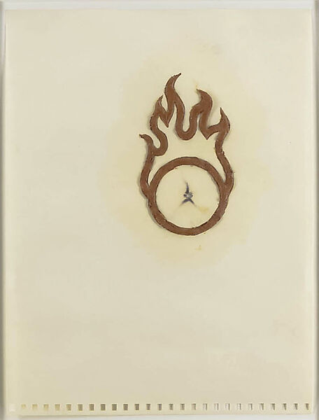 In the 1980s and ’90s, Beck and Moffett were deeply engaged in countering the often cruel politics and policies that attended the AIDS crisis. For these drawings—their sole collaboration—Beck provided Moffett with one of his signature shot-through notebooks. On its inside pages and covers, Moffett traced kaleidoscopic patterns around each puncture with graphite and fudge. The designs speak to Moffett’s abstract painting practice while also emphasizing the perversity and violence of the gunshot holes—puckered wounds that evoke a particularly fraught, and perhaps beautiful, scatological aperture of the body.