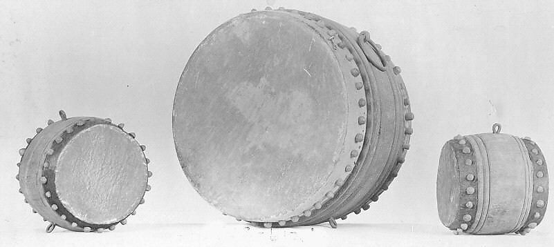 c) Diam. 27cm; L. 20cm - Classification: Membranophone-double-headed / cylindrical drum