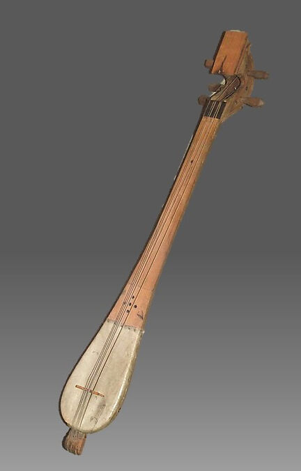 Found throughout the Arabian Peninsula, this plucked short-necked lute is carved from a single wood block and its hollowed body is covered with lamb skin. Linguistic variants of its names are widely distributed from North African to Indonesia. In Sumatra the related term gambus is used to describe an instrument similar to the ūd.