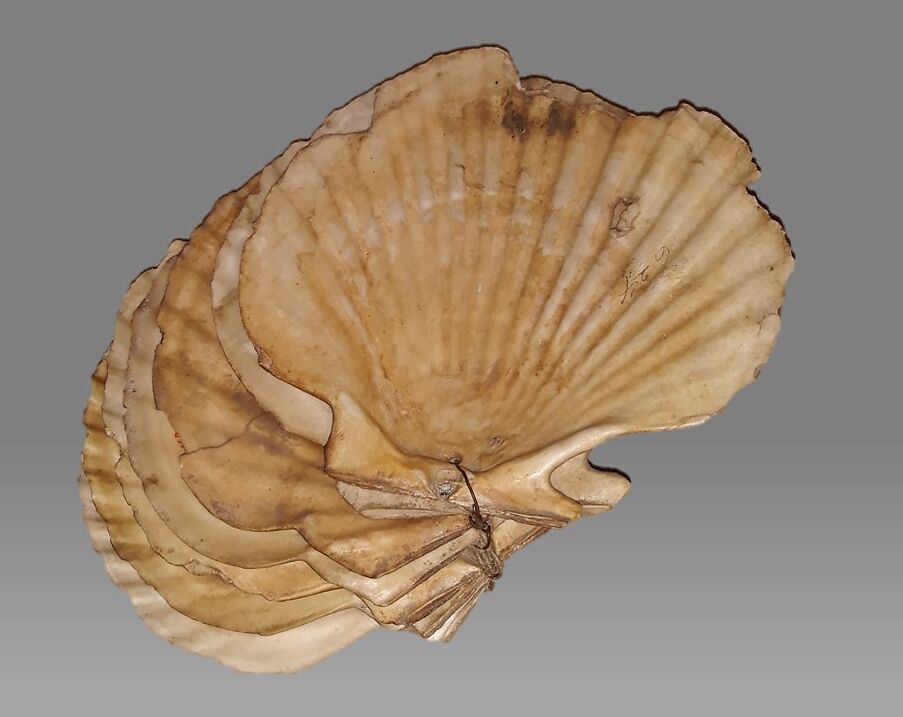 - Medium: (scallop) pecten shells, cloth-covered wire