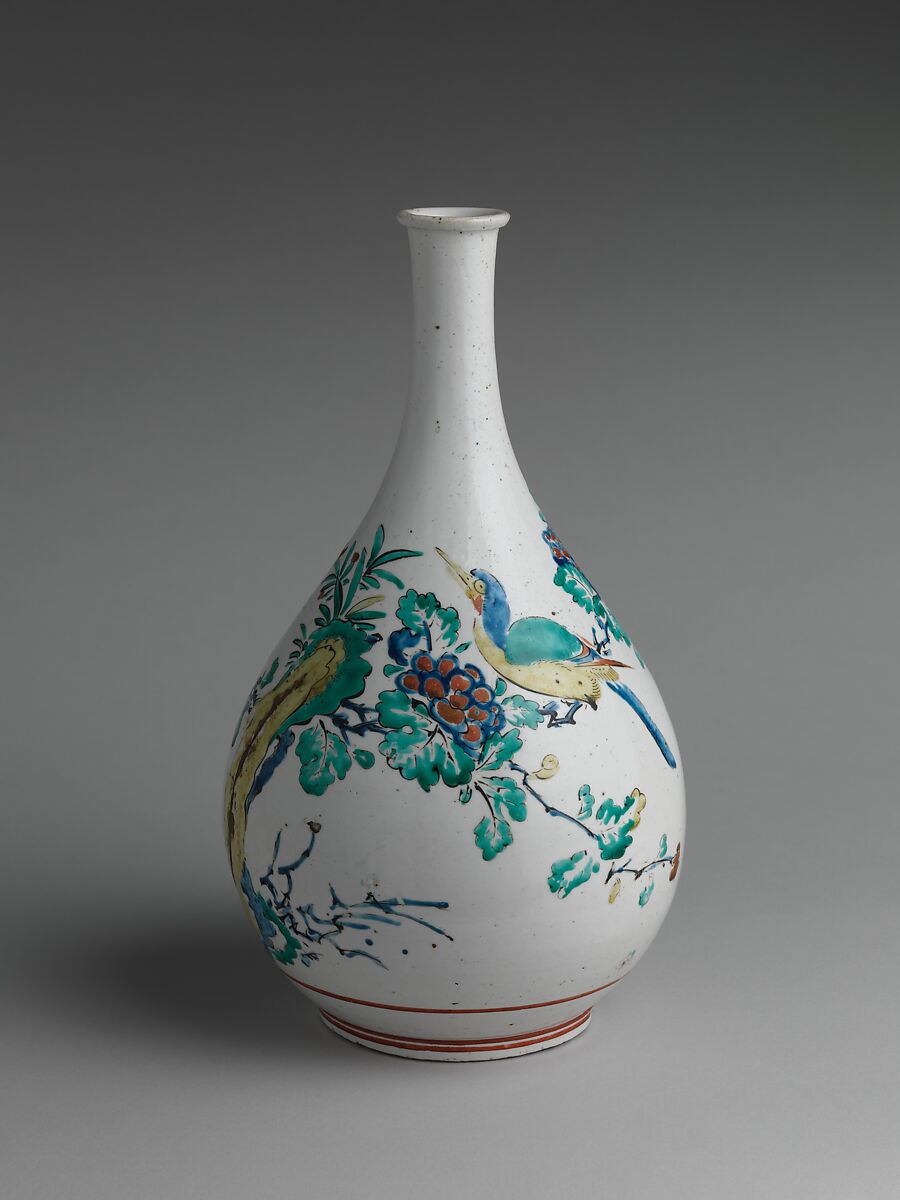 - Medium: Porcelain painted with colored enamels over transparent glaze (Hizen ware; Kakiemon type)