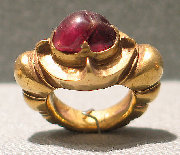 - Title: Ring Inlaid with Oval-Shaped Red Stone with Ribbed Hoop