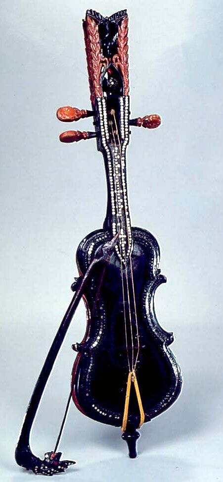 Also called the thro, the Burmese violin illustrates how local musicians adapted ideas introduced by the French in the early 18th century and later by the British. European instruments including the piano were assimilated into existing musical practices, replacing or coexisting with traditional forms. The three-stringed tayàw is played vertically supported by its spike.