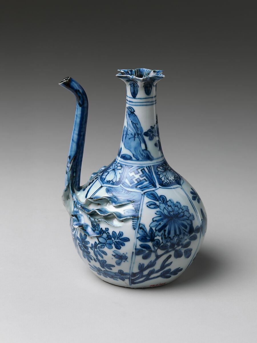 Although presumably made for trade with Europe, the shape derives from that of the kendi, a vessel used in Southeast Asia for pouring and drinking.