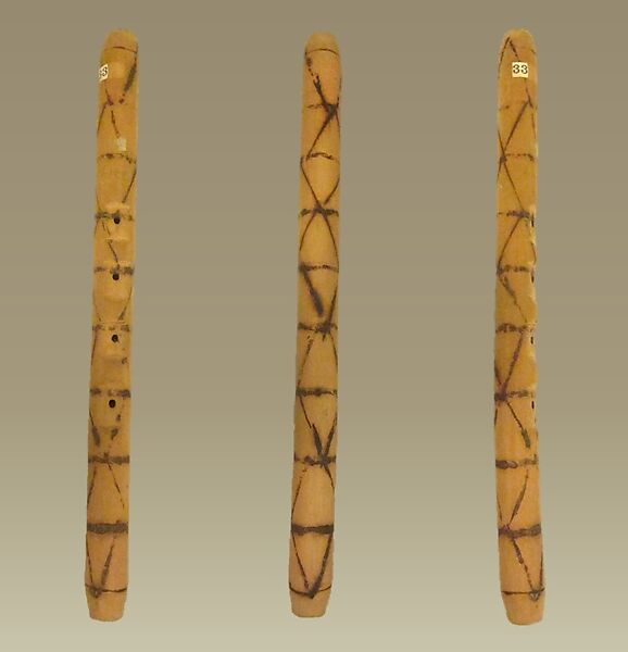 Blowing edge: Diam. 1.6 cm Finger hole positions see measurement photo - Classification: Aerophone-Blow Hole-end-blown flute (vertical)