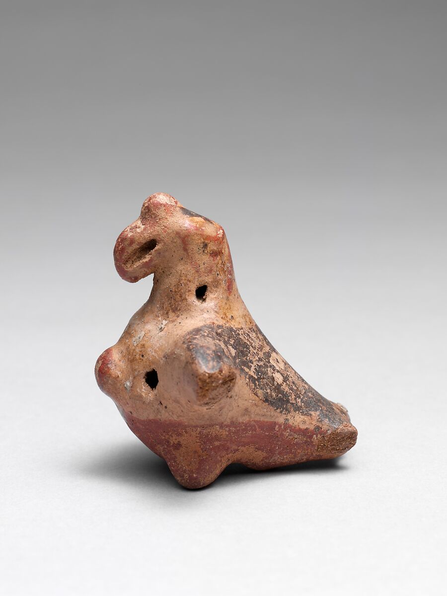Although numerous types of instruments survive from pre-conquest South and Central America, little is known of how they were used. Whistles were often made in animal or human form and probably had ceremonial functions or served as playthings. Smaller whistles in animal shapes, perhaps worn suspended from the neck, frequently have fingerholes that allow variation of pitch. Sometimes, the sound it creates mimics the creature represented.