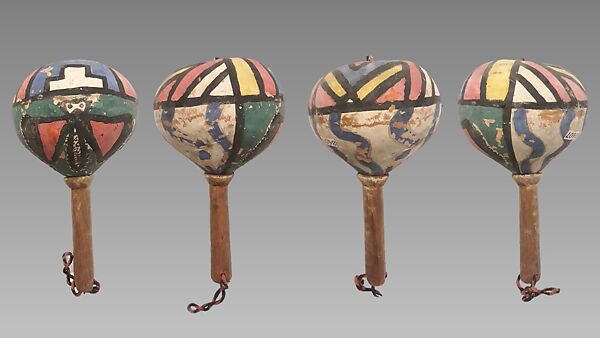 - Medium: Gourd, wood, pebbles or pellets, cloth, paint.