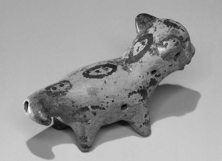 Although numerous pottery instruments survive from pre-Conquest South and Central America, little is known of how they were used before Spanish invaders ravaged the native cultures. Whistles, trumpets and rattles in animal or human form probably had ceremonial functions or served as playthings. Smaller whistles in animal shapes, perhaps worn suspended from the neck, sometimes have fingerholes that allow variation of pitch.