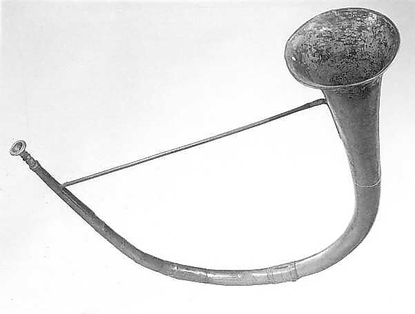 One of the major tasks assigned to brass instruments was to signal and announce. The cavalry used trumpets while the infantry choose bugle horns for many military functions that included marking the time of day and alerting troops in the field. Bugles appear in many forms during the nineteenth century. Starting with the half moon, these forms incorporated a variety of coiled configurations for the tube, a feature that had no effect upon the tone quality. Mail-coach postmen in continental Europe used post horns, short coiled bugles, to signal the arrival and departure of the mail. This instrument was originally used for the hunt, half moons were also introduced to the military in the second half of the eighteenth century.