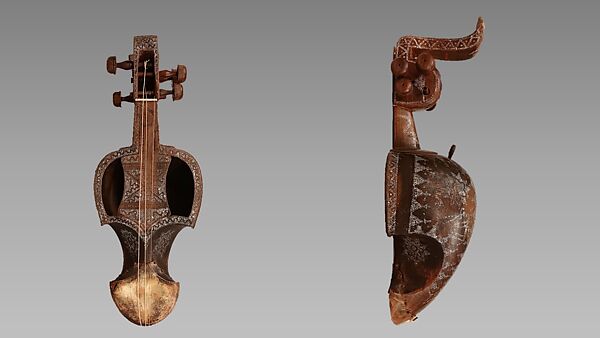 Sārindā with three melody strings.The sārindā, which is played with a bow, has an unique shape which is usually craved from a single block of wood. It is used to accompany song and flute. More elaborate versions with sympathetic strings.