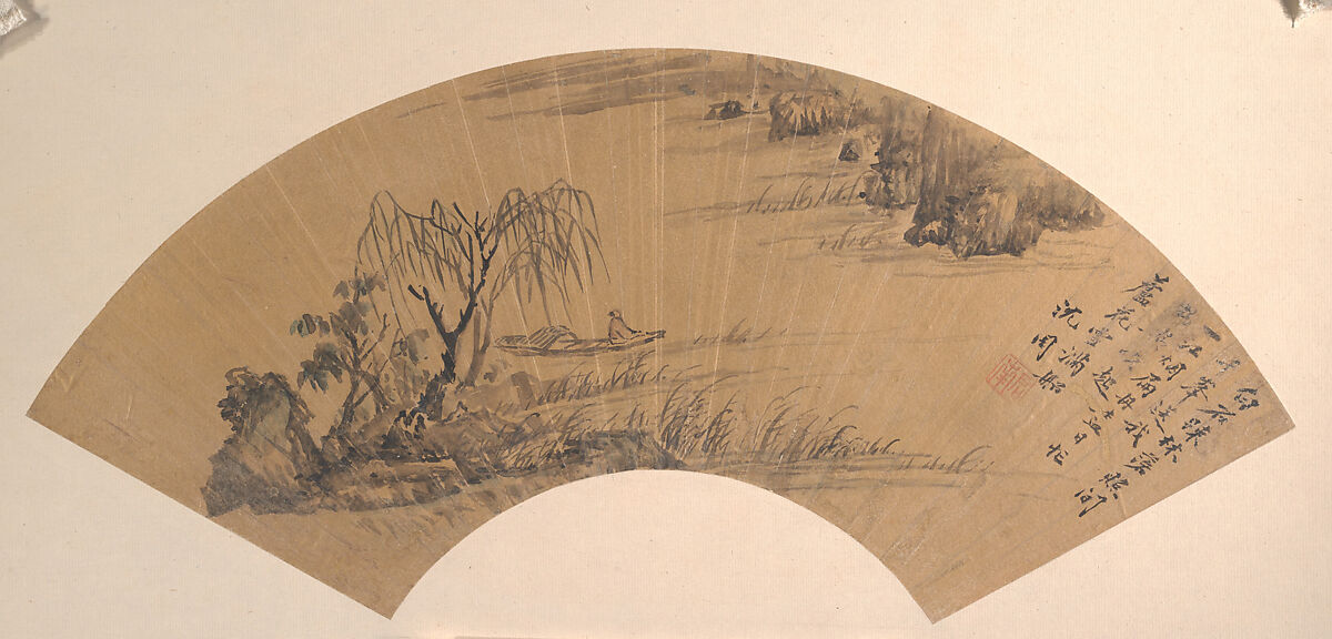 - Medium: Folding fan mounted as an album leaf; ink on gold paper
