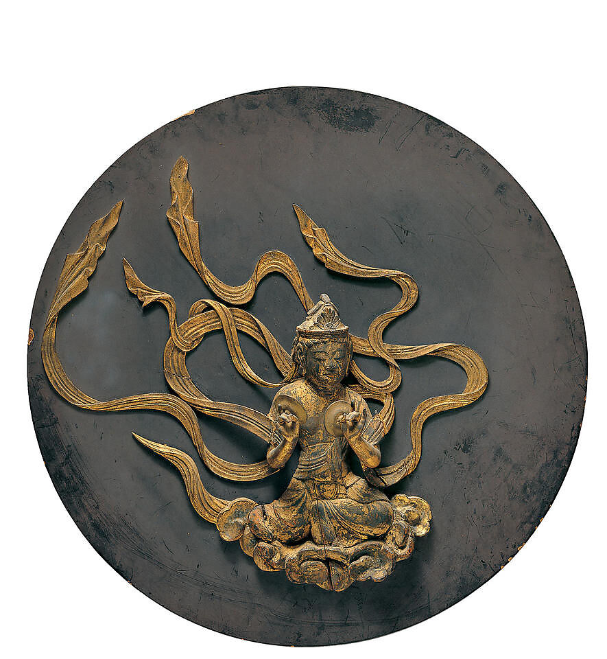 This sculptural configuration, known as an Amida Triad (Amida-sanzon), visualizes the “welcoming descent” (raigō) of Amida Nyorai (Sanskrit: Amitabha Tathagata) to this world, along with his heavenly retinue, to provide salvation for believers at the time of death. Amida, the Buddha of Limitless Light, sits upon a lotus pedestal at the center of the altar. He is flanked by his attendant bodhisattvas, Kannon (Sanskrit: Avalokiteshvara) at his right and Seishi (Sanskrit: Mahasthamaprapta) at his left.