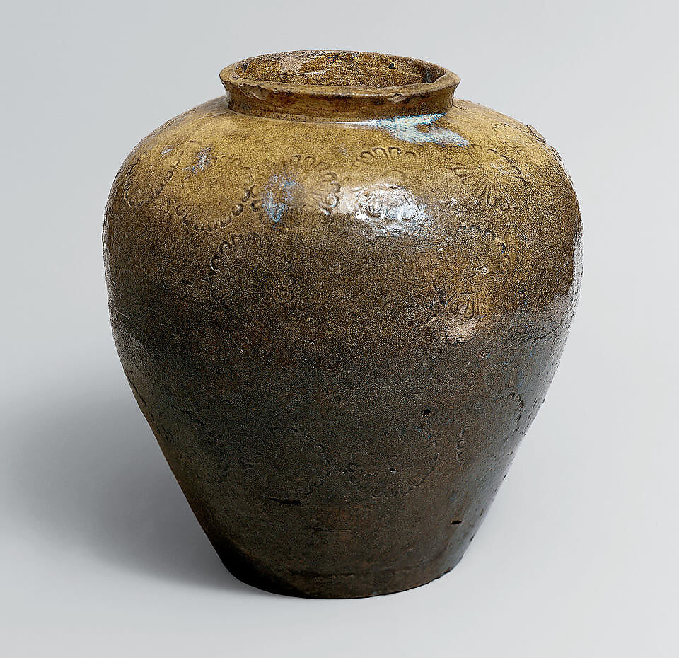 - Medium: Ash-glazed stoneware with stamped decoration (Ko-Seto ware)