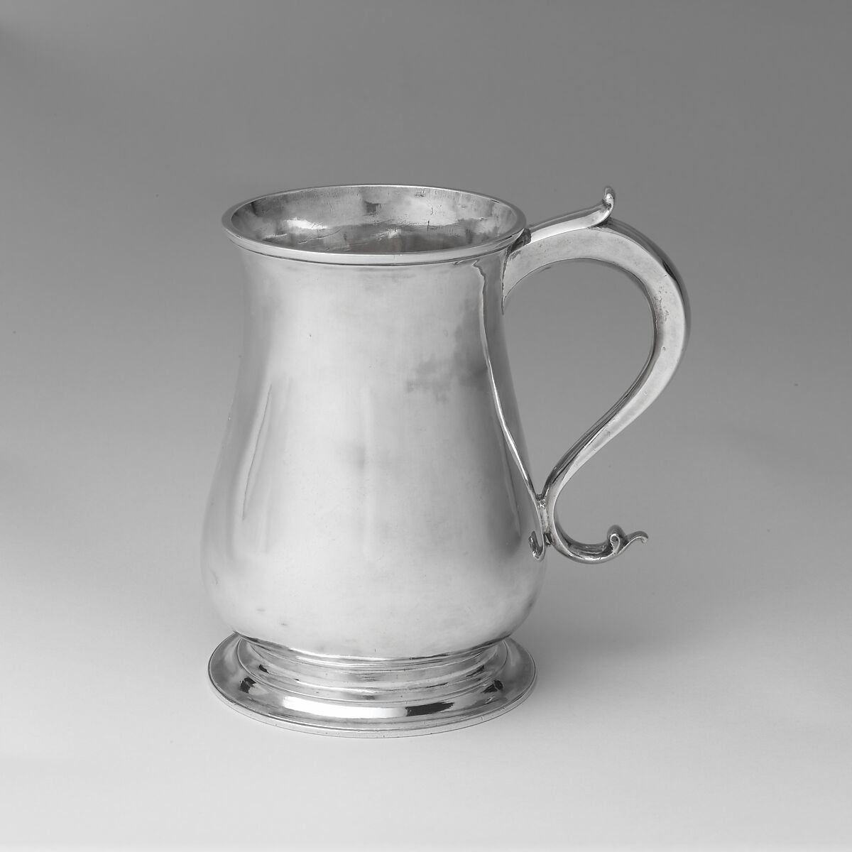 The crest engraved on the front of this mug is possibly that of the Fielding family (Whiting and Wythers are other possibilities as well). Clearwater wrote that it belonged to the Garbet family.
