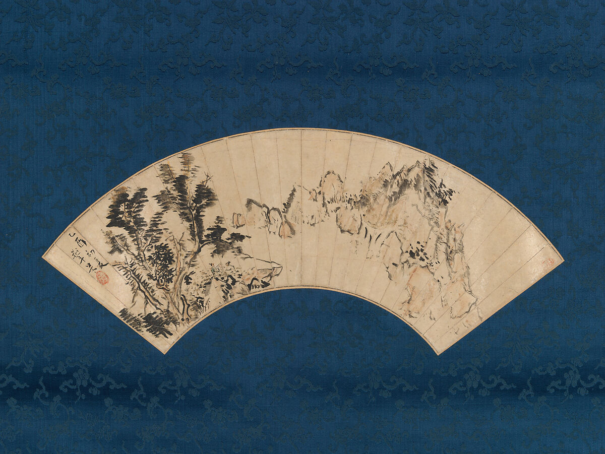 - Medium: Folding fan mounted as a hanging scroll; ink and color on paper